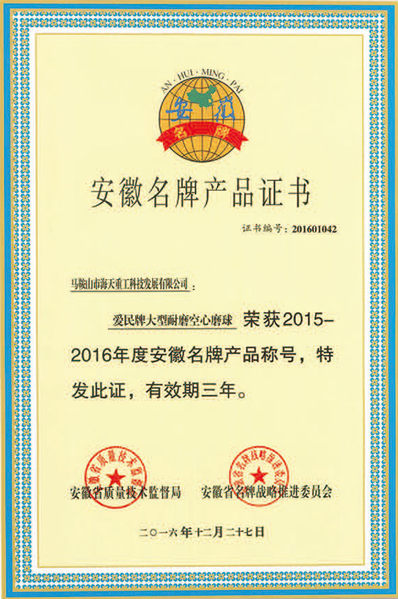 安徽名牌產(chǎn)品證書
